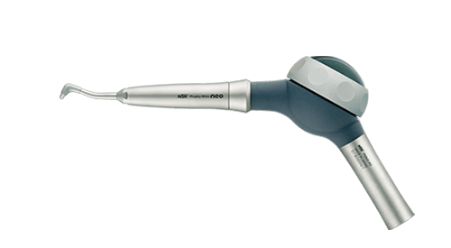 Geliştirilmiş Prophy-Mate neo, daha kolay kullanım için form ve işlevselliği bir araya getiriyor. Mükemmel ağırlık dengesi ve hafif, kompakt toz haznesi, Prophy-Mate neo'yu tutmayı rahat hale getirirken, orijinal NSK başlık bağlantısı güçlü hava basıncı altında bile 360° dönebilir. Zahmetsiz çalışma, plak ve lekelerin tedavi süresini kısaltır. 60° ve 80° nozullar mevcuttur.