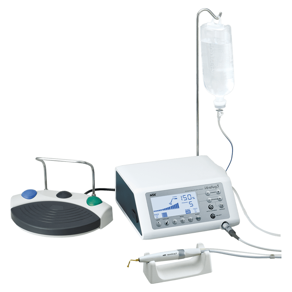 İki üniteyi bağlantı kablosuyla birbirine bağlayarak hem Surgic Pro implant motorunu hem de VarioSurg3 ultrasonik kemik cerrahisi sistemini tek bir ayak pedalıyla çalıştırabilirsiniz. İki cihazı Bağlantı Standına yerleştirerek kompakt ve yerden tasarruf sağlayan, her şeyi kapsayan bir cerrahi tedavi merkezi oluşturabilirsiniz. İki sistem, minimum yer kaplayan bir Bağlantı Standı ile birlikte kompakt bir şekilde de kurulabilir.