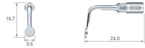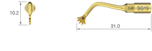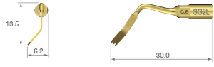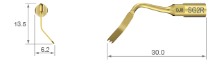 TiN kaplama / 90 derece sola kavisli uç* / Üç dişli; 0,6 mm kalınlık*Ucun kavis yönü, ucun ön görünümüyle belirlenir.SURG 150%