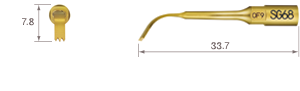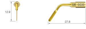 TiN kaplama / Uçtan itibaren 3, 6 ve 9 mm'de nokta işaretleri / Üç diş; 0,6 mm kalınlık /Yüksek güce karşılık gelen uçlar %150'ye kadar güç ayarında kullanılabilir.SURG 150%