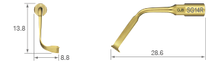 TiN kaplama / 90 derece sağa kavisli uç* / Üç diş; 0,6 mm kalınlık*Ucun kavis yönü, ucun ön görünümüyle belirlenir.SURG 150%