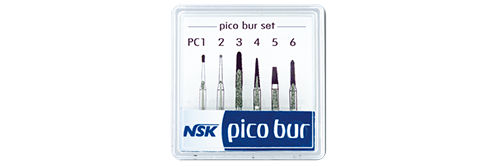 NSK, pico başlığı özel olarak çalışmak üzere ultra kısa şaftlı özel frezler geliştirmiştir. Bu yüksek kaliteli hassas frezler konsantrik ve dayanıklıdır. NSK ultra kısa şaftlı frezlerin kullanımı, pico mini kafa başlığın avantajlarını en üst düzeye çıkarır.